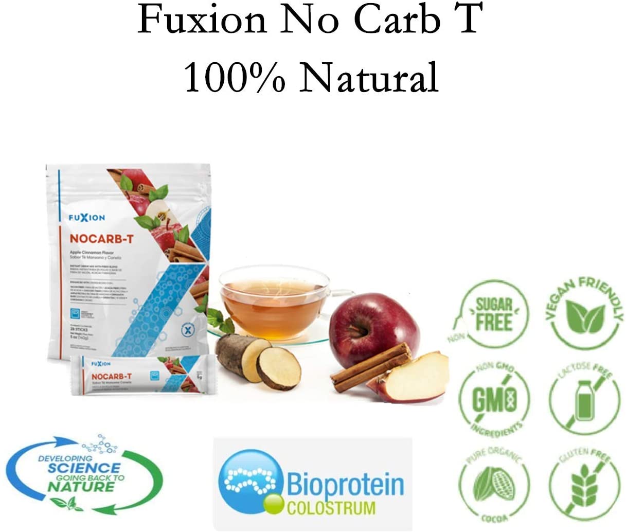 KEEP THOSE CARBS UNDER CONTROL WITH NOCARB-T! FuXion NoCarb-T is an excellent choice to help you manage your weight and keep carbohydrates at bay, thanks to its new formula that incorporates four extraordinary ingredients, helping you control carbohydrate absorption and metabolism more effectively, preventing them from accumulating as fat in your body. NoCarb-T is a blend of Yacon fiber, Chicory fiber and Acacia Fiber (known for helping to reduce the rates of carbohydrate absorption and fat transformation), Apple Pectin and Cinnamon Bark (which are generally believed to contribute to the reduction of glucose in the blood, and aid cholesterol regulation) and Vitamin B and Chromium in organic molecule form (proven to be fundamental for the metabolism of carbohydrates and fats). Delicious apple-cinnamon flavored tea, made of yacon fibre and acacia, that module the absorbtion of carbohydrates in the body and favor the natural metabolism of glucose, which contributes to body weight and measurement control. Benefits Nocarb-T helps reduce and modulate the assimilation of sugar (carbohydrates) in your body, in this way it prevents sudden rises in blood glucose and helps control the accumulation of fat.
